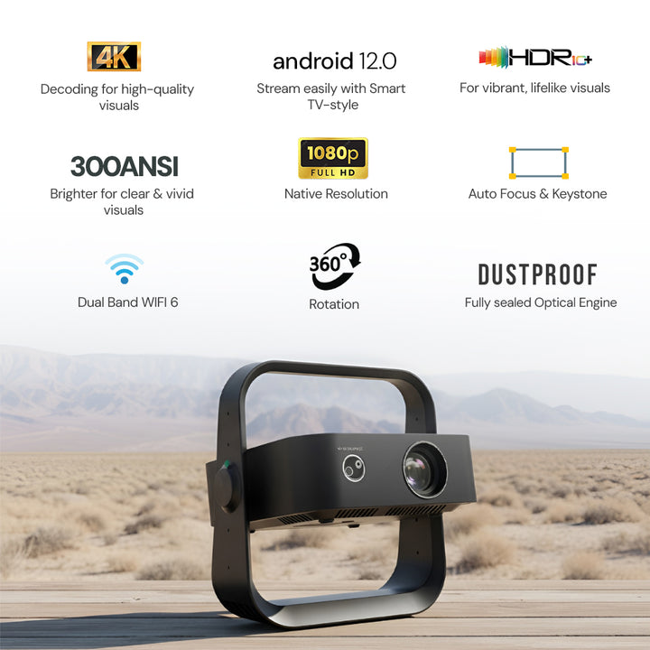 WP112 ORBIT 360 Pro Smart Projector |300 ANSI Lumens|Native 1080P Full HD |Android 12