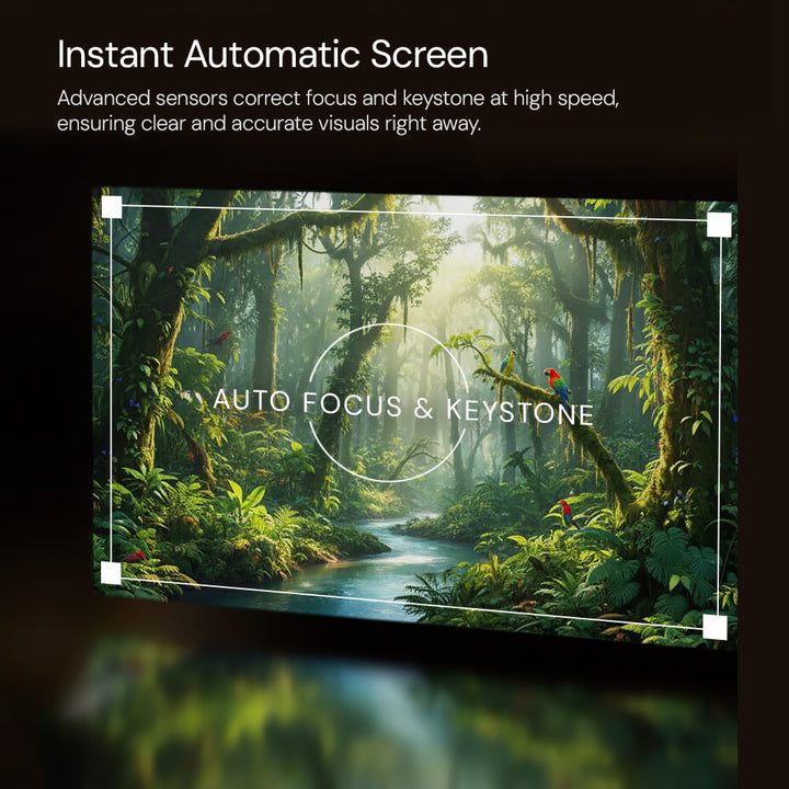 • ✅ Auto Focus & 6D Keystone Correction for Easy Setup – Designed with advanced auto-focus technology and 6D ±40° keystone correction, this smart projector instantly adjusts image clarity and alignment. Set up in seconds and enjoy a perfectly sharp, distortion-free picture from any angle or position.