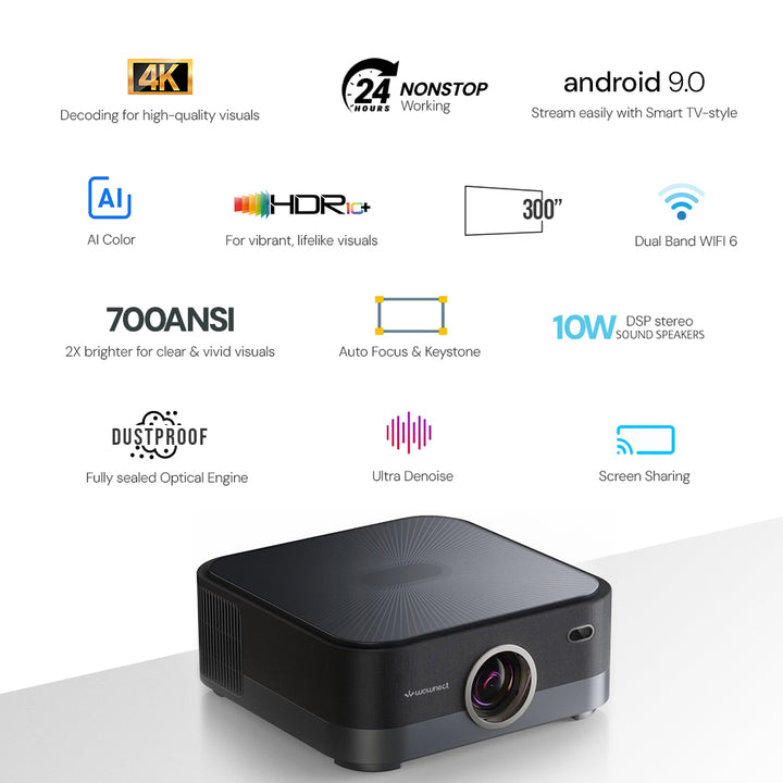WP114 H24 Max Smart Projector, 700 ANSI Lumens 1080P Full HD, 4K Support, 24H Nonstop Use