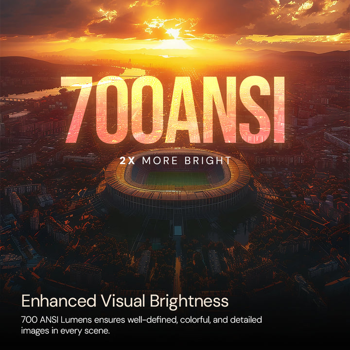 - ✅ 700 ANSI Lumens Full HD 1080P Smart Projector – Experience bright and sharp visuals with this native 1080P Full HD Android projector delivering 700 ANSI lumens brightness and 4K support. Perfect for home theater, office presentations, and classroom learning, offering vivid colors and crystal-clear projection up to 300 inches.