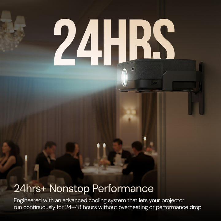 ✅ Durable & Dustproof Projector for 24-Hour Nonstop Operation – Designed with a fully sealed optical engine, the Wownect H24 Max projector prevents dust entry for longer lifespan and consistent brightness. Built for 24-hour continuous operation, it’s perfect for education, digital signage, cafes, offices, or long event use.