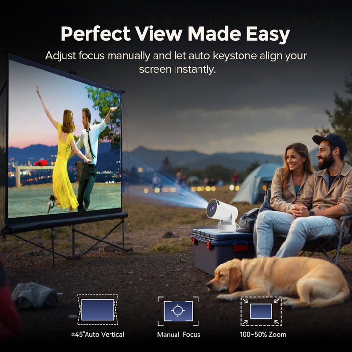 - ✅ Auto Keystone Correction and 4-Point Digital Adjustment: Features auto vertical keystone and advanced 4-point image correction for perfectly aligned visuals from any angle. The zoom function allows easy screen size adjustment without moving the projector, ideal for flexible setups in tight or irregular spaces.